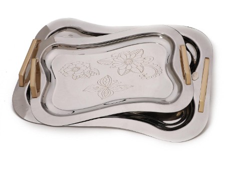 طقم صواني تقديم ستانلس ستيل مقاوم للصدأ – 2 قطعة